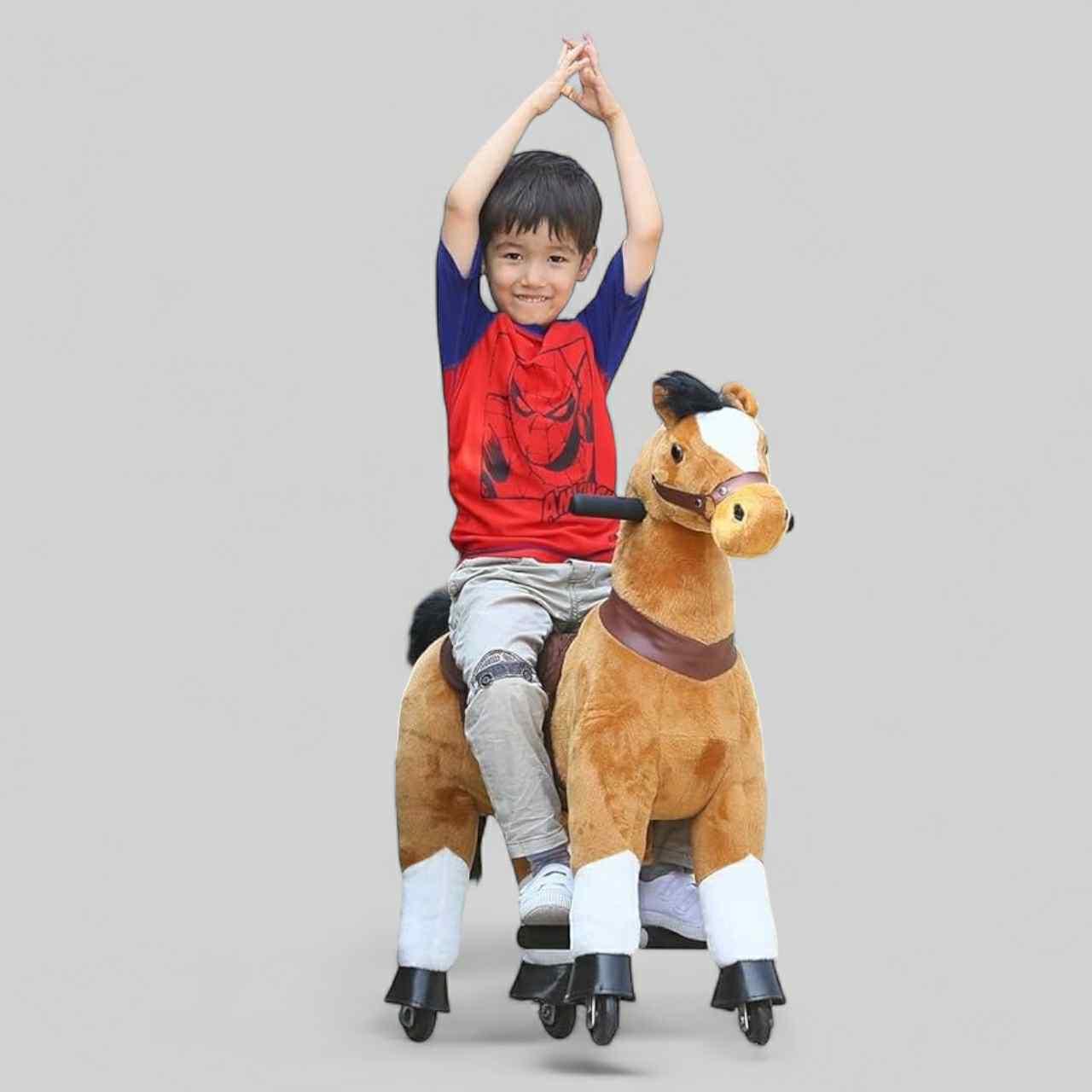 Vi lar barna ta seg en ridetur! Dyrene har pedalfunksjon og går på hjul. Vi har to ulike størrels...